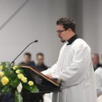 Homiliju je izrekao pomoćni biskup Ivan Šaško istaknuvši: “Ovdje smo da bismo dali hvalu Bogu za život našega brata svećenika koji je urezan u naše živote, za milosti koje smo po njemu i s njime živjeli, za spremnost na služenje čovjeka koji u Crkvi očituje i ljepotu i težinu od Boga povjerene mu službe.”