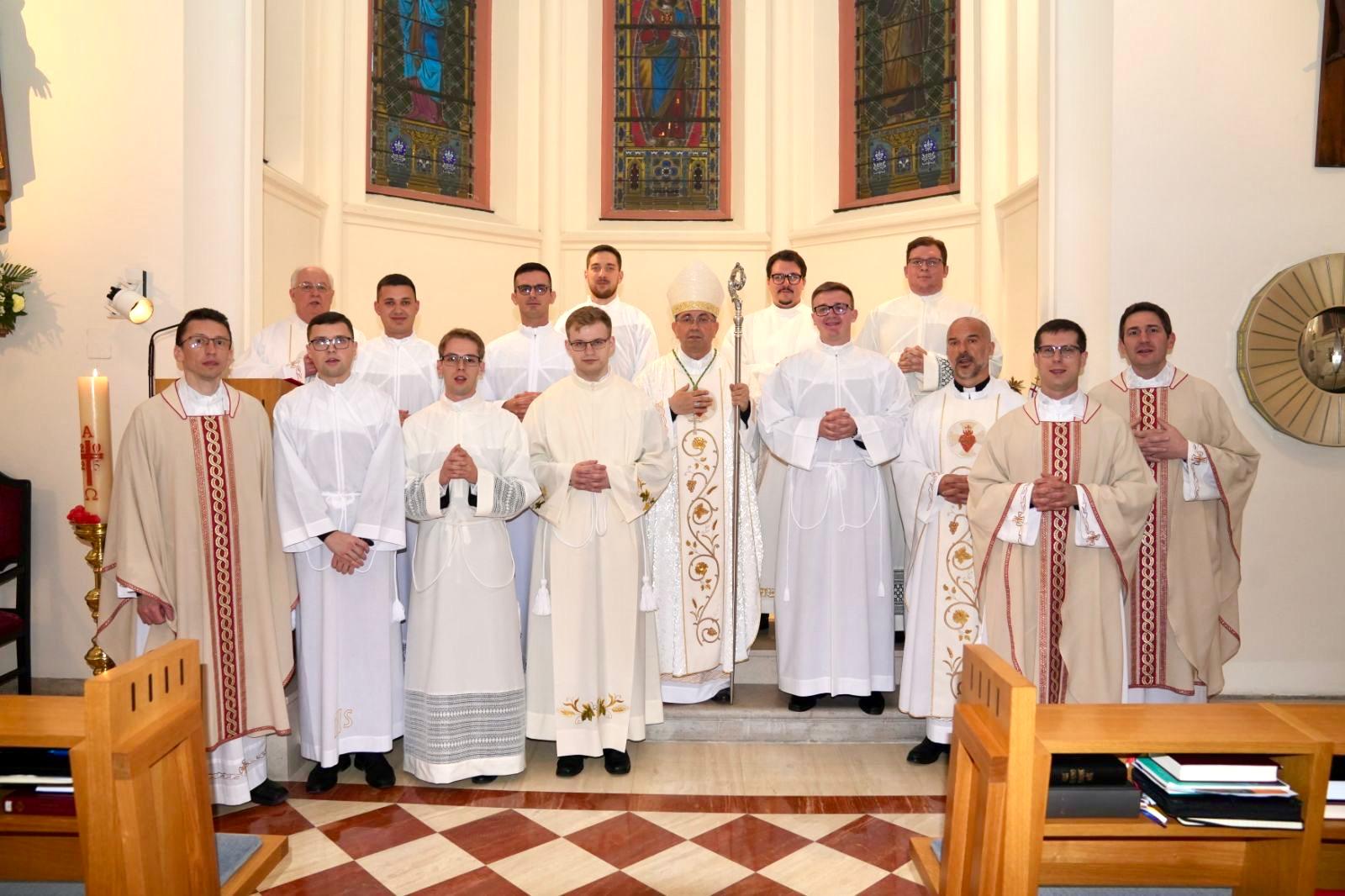 U službu akolitata postavljeni su: za Zagrebačku nadbiskupiju Adrian Bogdan, Ljudevit Marija Jaroš, Mihael Popić i Marko Stjepanović, za Požešku biskupiju Luka Barišić, za Sisačku biskupiju Fran Kovačević, za Đakovačko-osječku nadbiskupiju Fabijan Križanović, za Barsku nadbiskupiju Marjan Đonović i za Sambotelsku biskupiju Martin Benceš.
